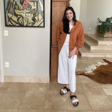 Por ser feita com fibras naturais, essa peça está sujeita a até 5% de encolhimento. Pra manter o caimento bonito, vale ler com carinho as instruções de cuidado e a etiqueta de composição.