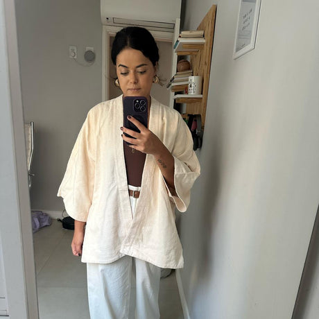 Dica MAR·AMÔ: Combine-o com o Kimono Mar, que é feito do mesmo material, para um look de verão impecável, unindo estilo e consciência ambiental.